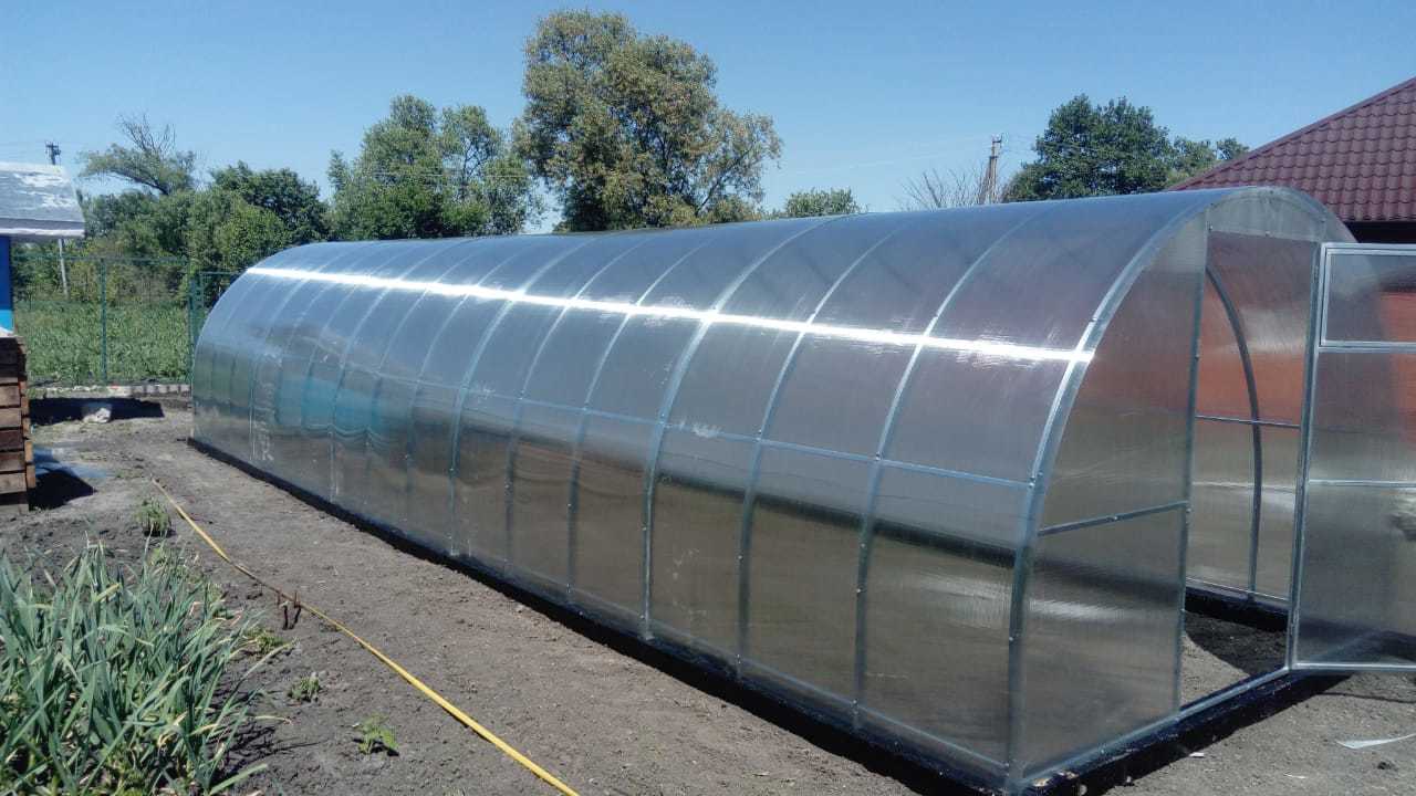 Хорошая теплица, размером 6 на 3 метра, каркас - оцинкованная труба, да и вообще все металлические части покрыты цинком для долговечности.