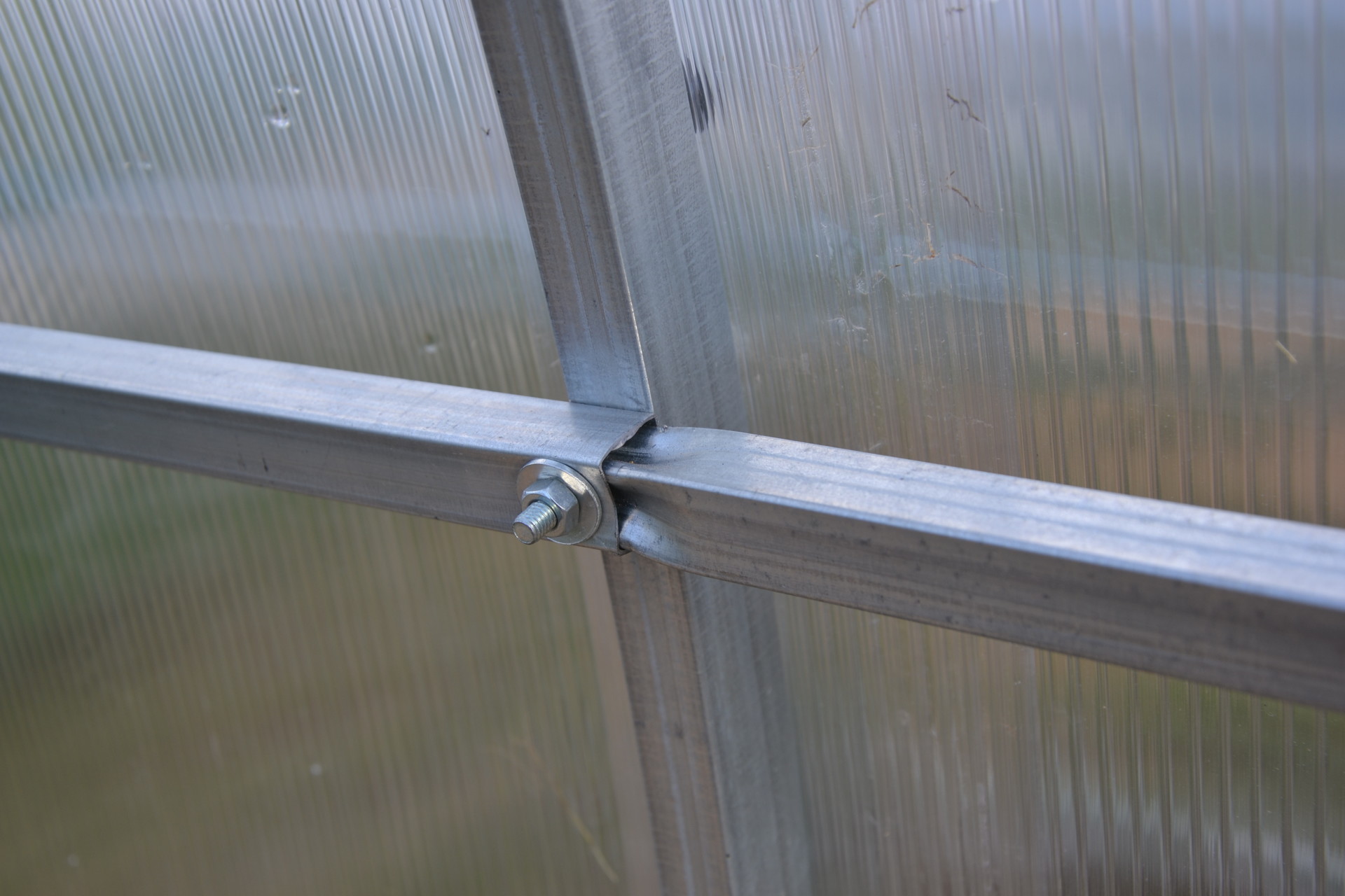 Цинковое покрытие надёжно защищает каркас теплицы от коррозии. Стальная труба оцинкована полностью с наружной и с внутренней стороны.