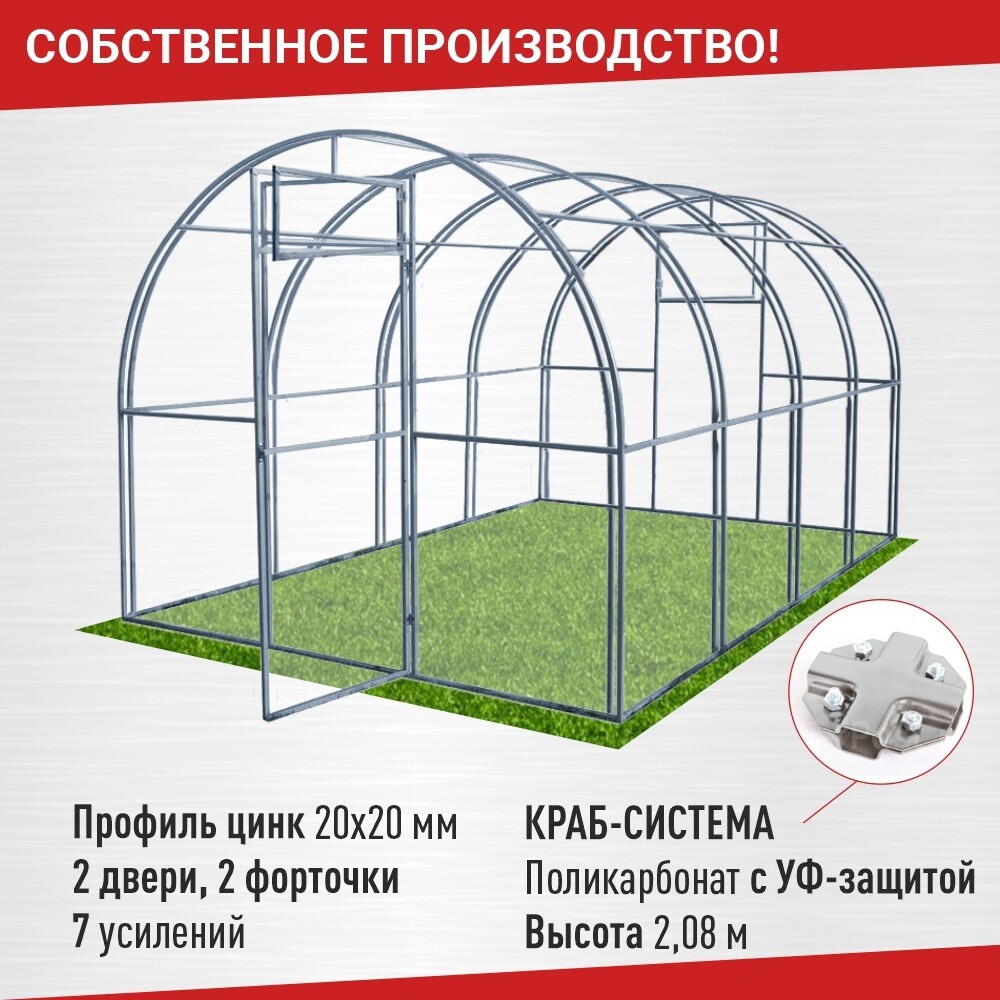 Длина теплицы: от 4 м до любой длины; шаг удлинения — по 2 мШаг дуги: 0,67 м